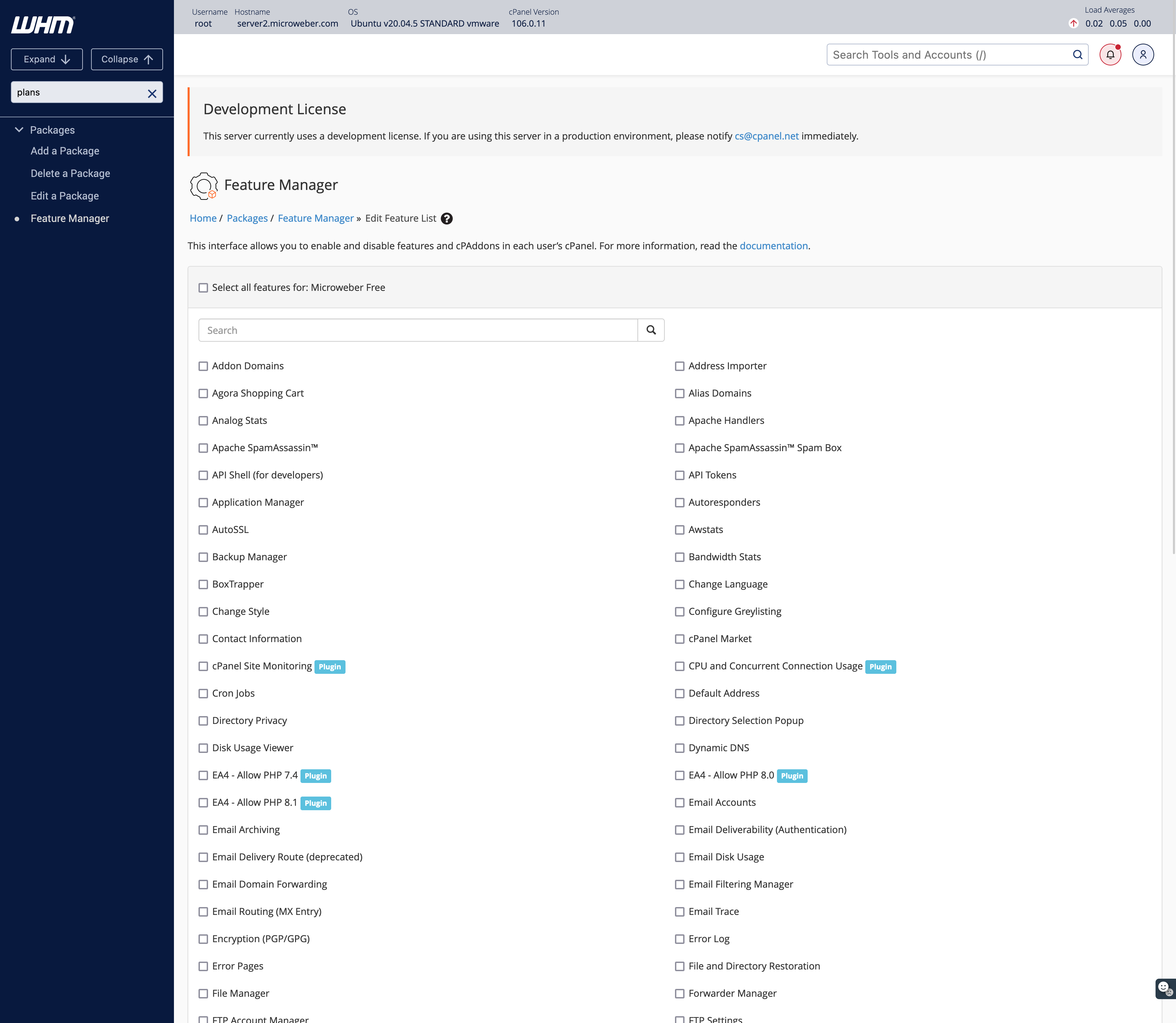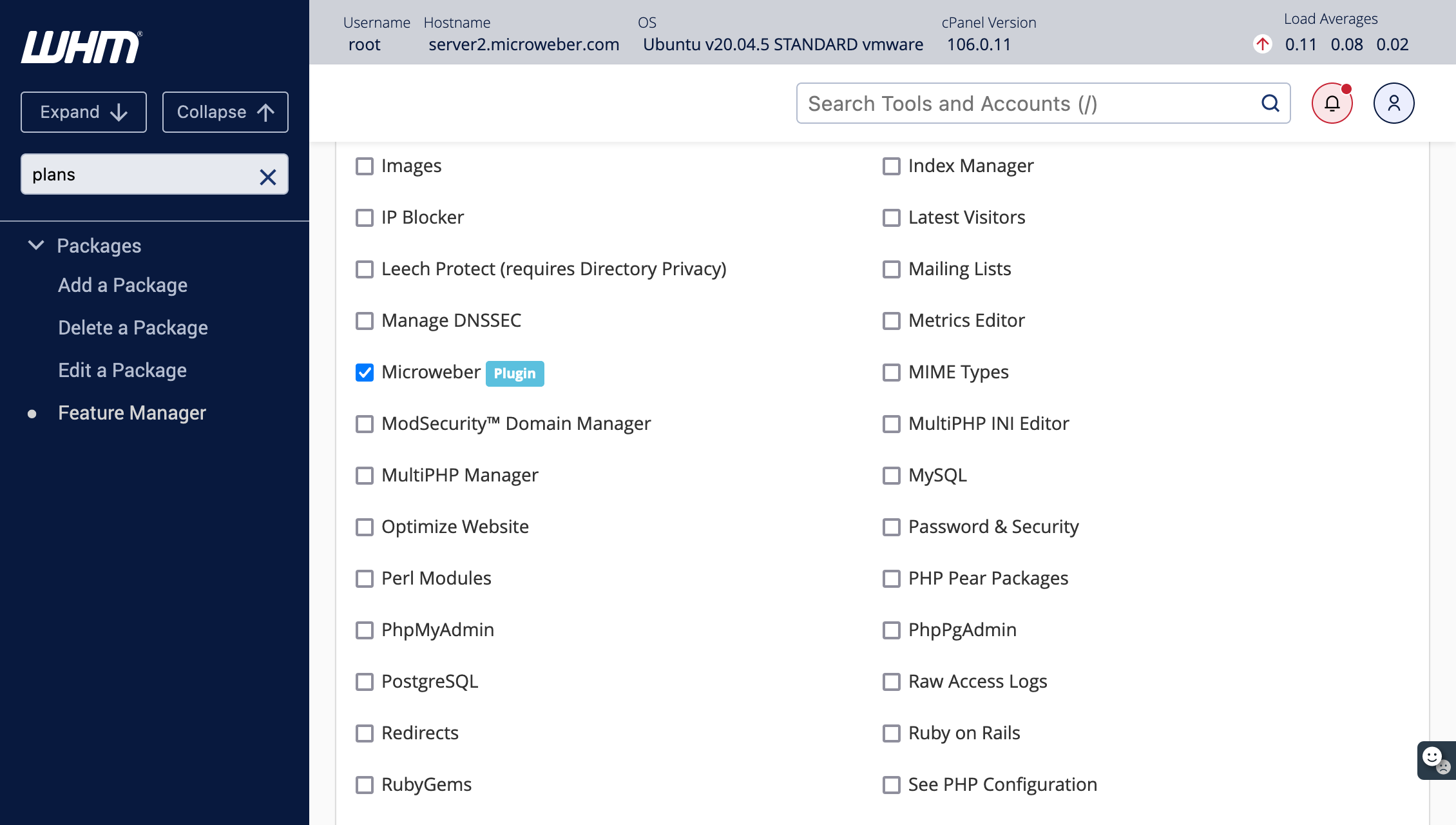 Select the Microweber(PLUGIN) feature