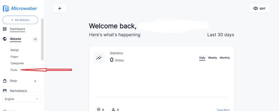 • From the left windows corner Click on “**Website**”, below list will appear to click on “**Posts**”.