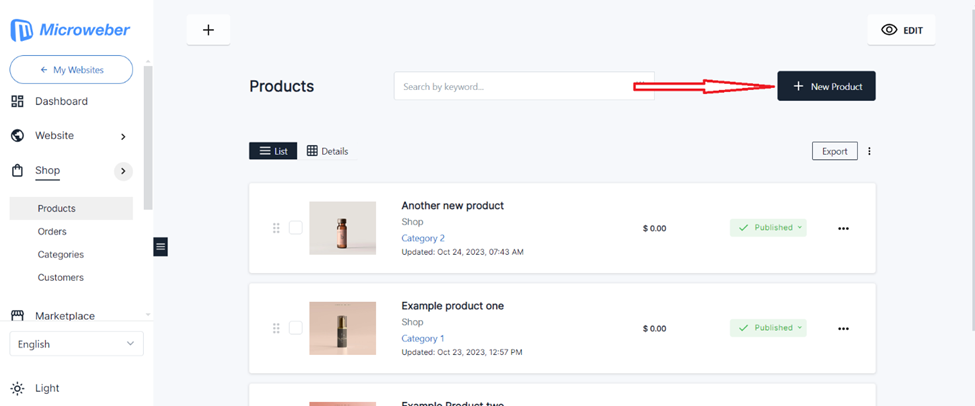 Note: You can always Edit your saved products from Products Page after creating and saving a product.