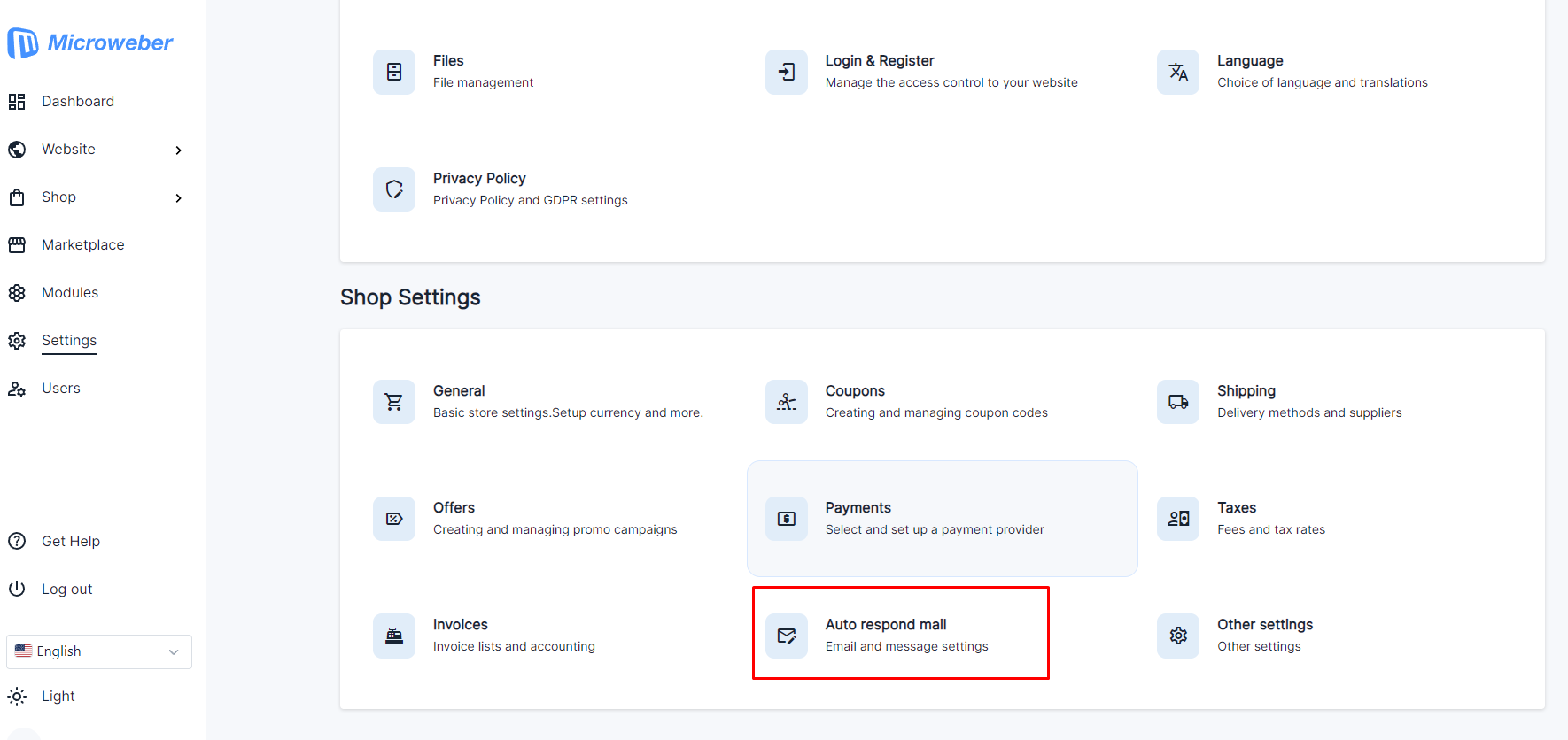 2. Scroll to shop settings and find "Auto respond email" settings<br>