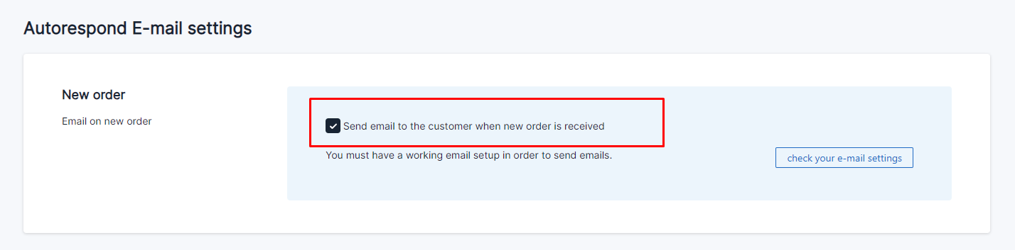 3. Select the checkbox to enable the email to be send to the customer<br>