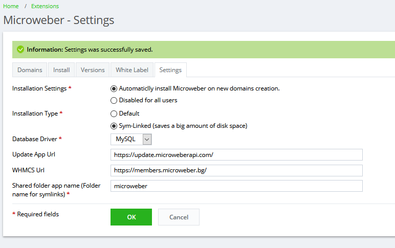 **For plugin setup**: Go to *Server management->Microweber->Settings* and you will be able to set various options of the plugin and also connect it to WHMCS.